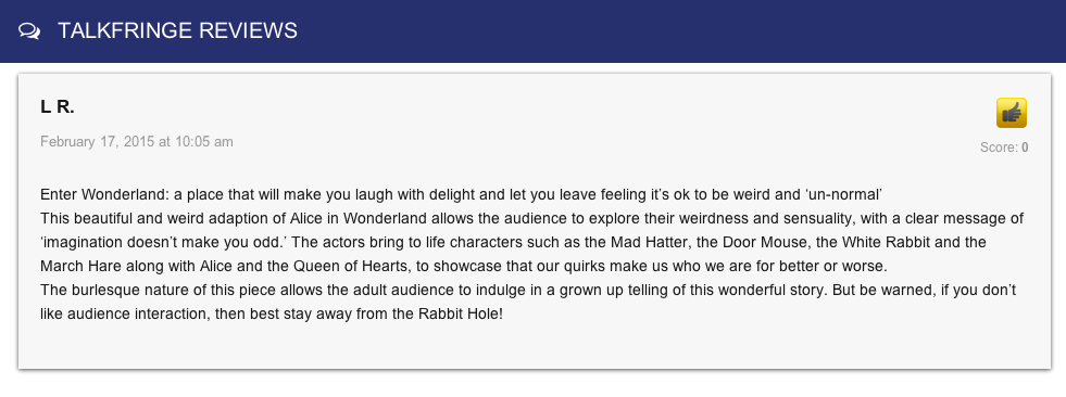 And here is a sneaky review left on the Fringe website!