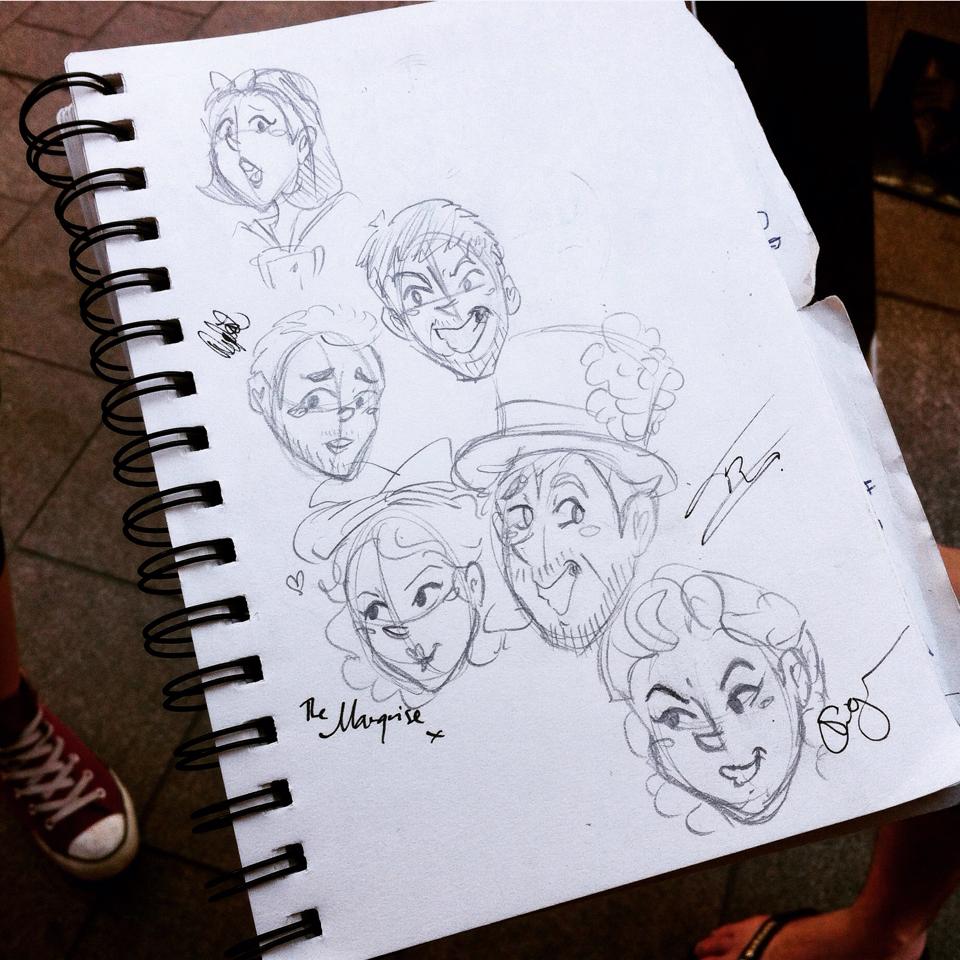 And as far as totally adorable occurrences of the tour go, I think this one takes the cake…a lovely audience member drew caricatures of all of us during one of our performances at the mall! How cute is this?!